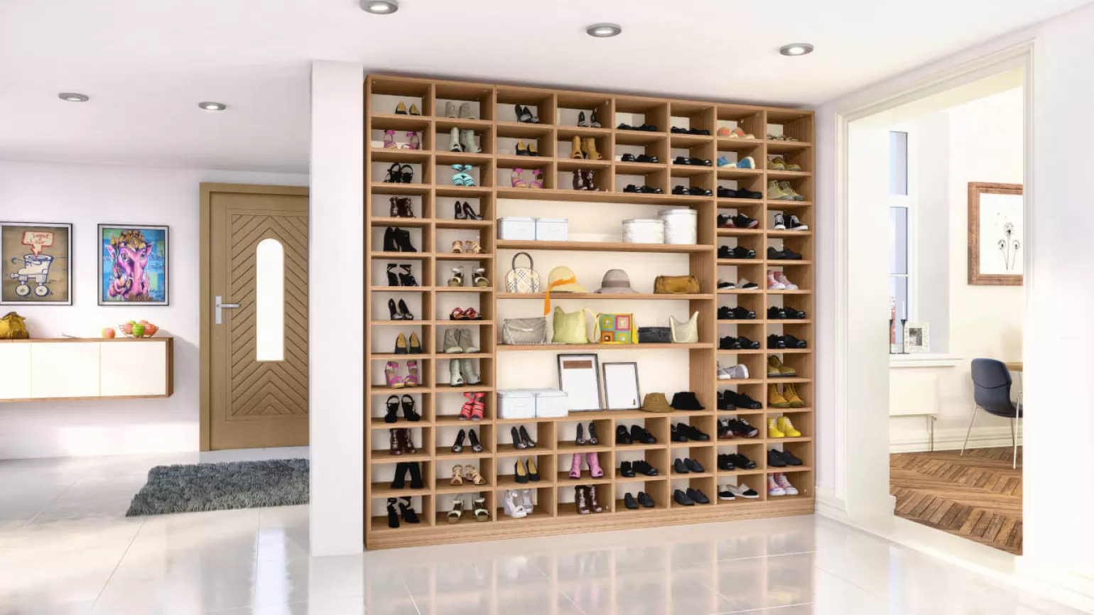 Schuhregal mit geschlossenem Mittelteil in Hellgrau